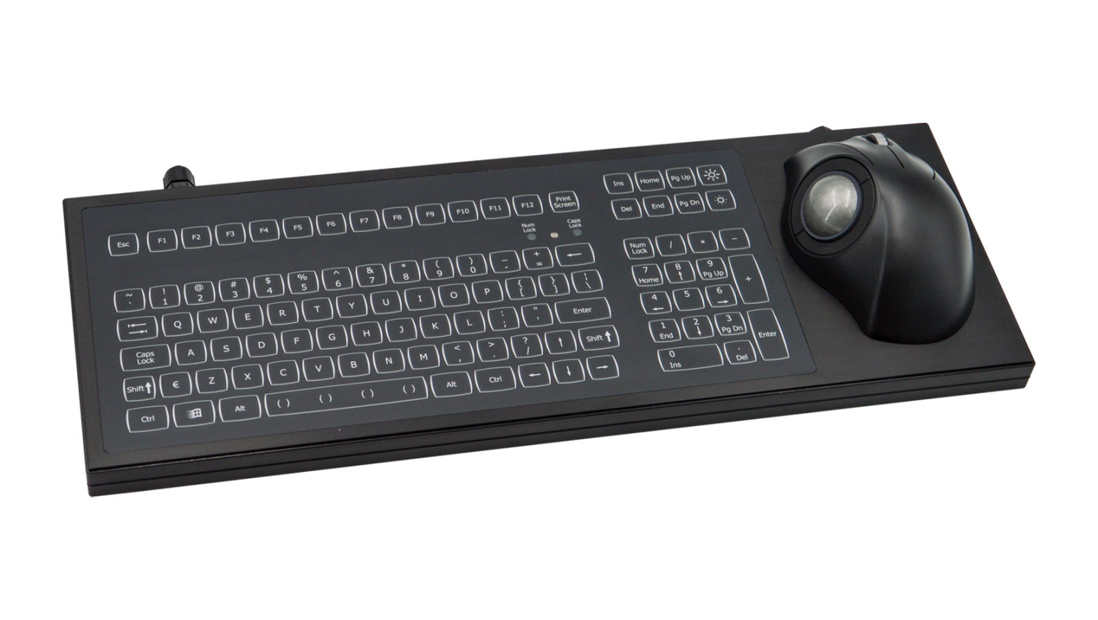 - Integrated IP68 ergonomic trackball and scroll wheel